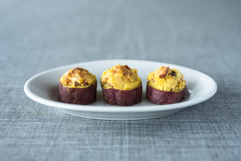 といってもそんなに特別なことはしないのですが(笑)さつまいもを輪切りにして蒸して、くり抜いて潰して、キャラメリゼしたりんごと合わせて、また元に戻すだけ!